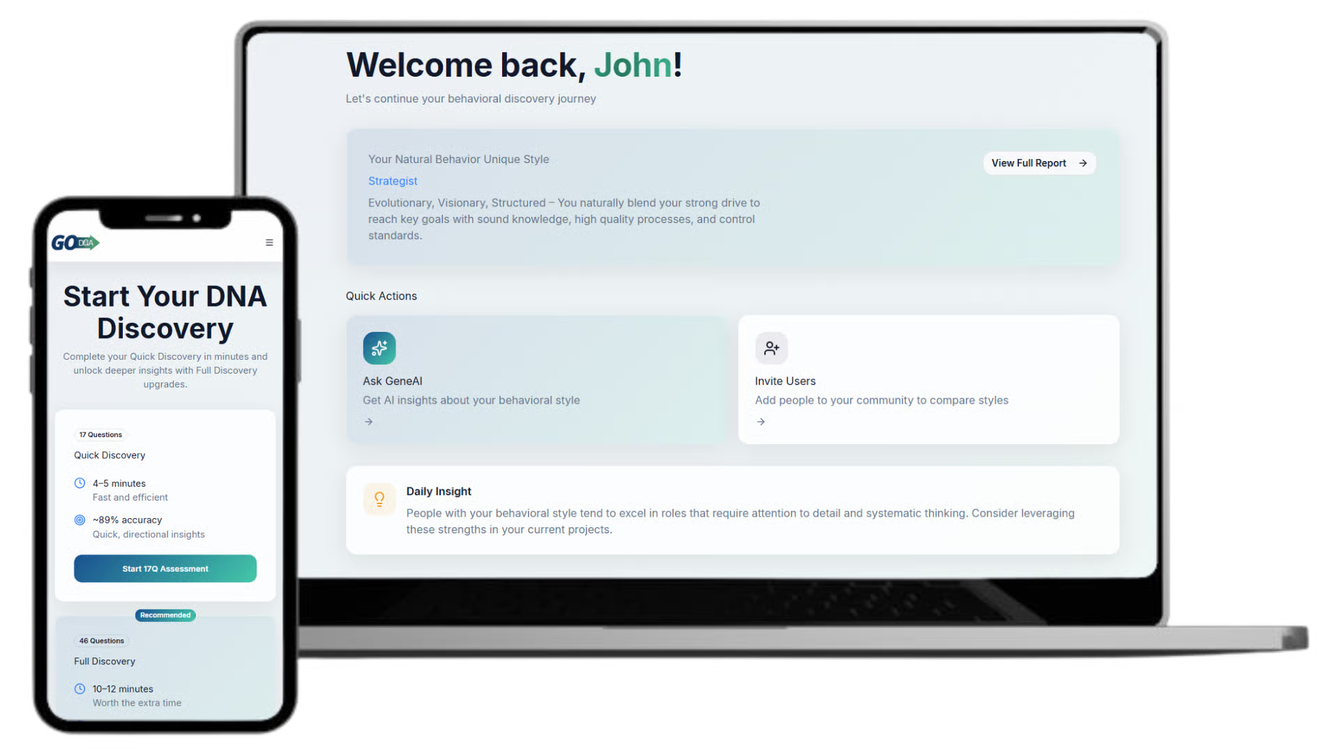 GoDNA reveals your natural behavior style and gives you the tools to work better, communicate clearly, and understand others without guessing.